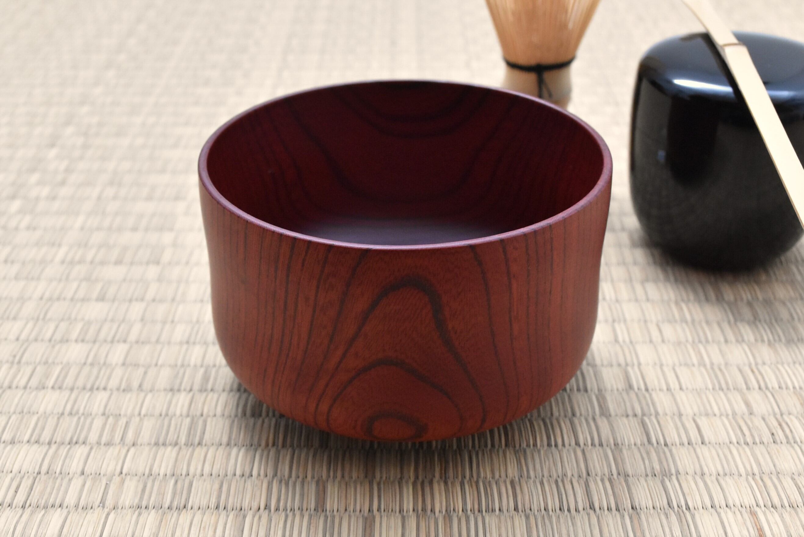 抹茶碗の代表的な形を欅(ケヤキ)でロクロ作りしました。軽く割れず熱を伝えにくい特徴があります。茶碗としても食器としてもお使いいただけます。