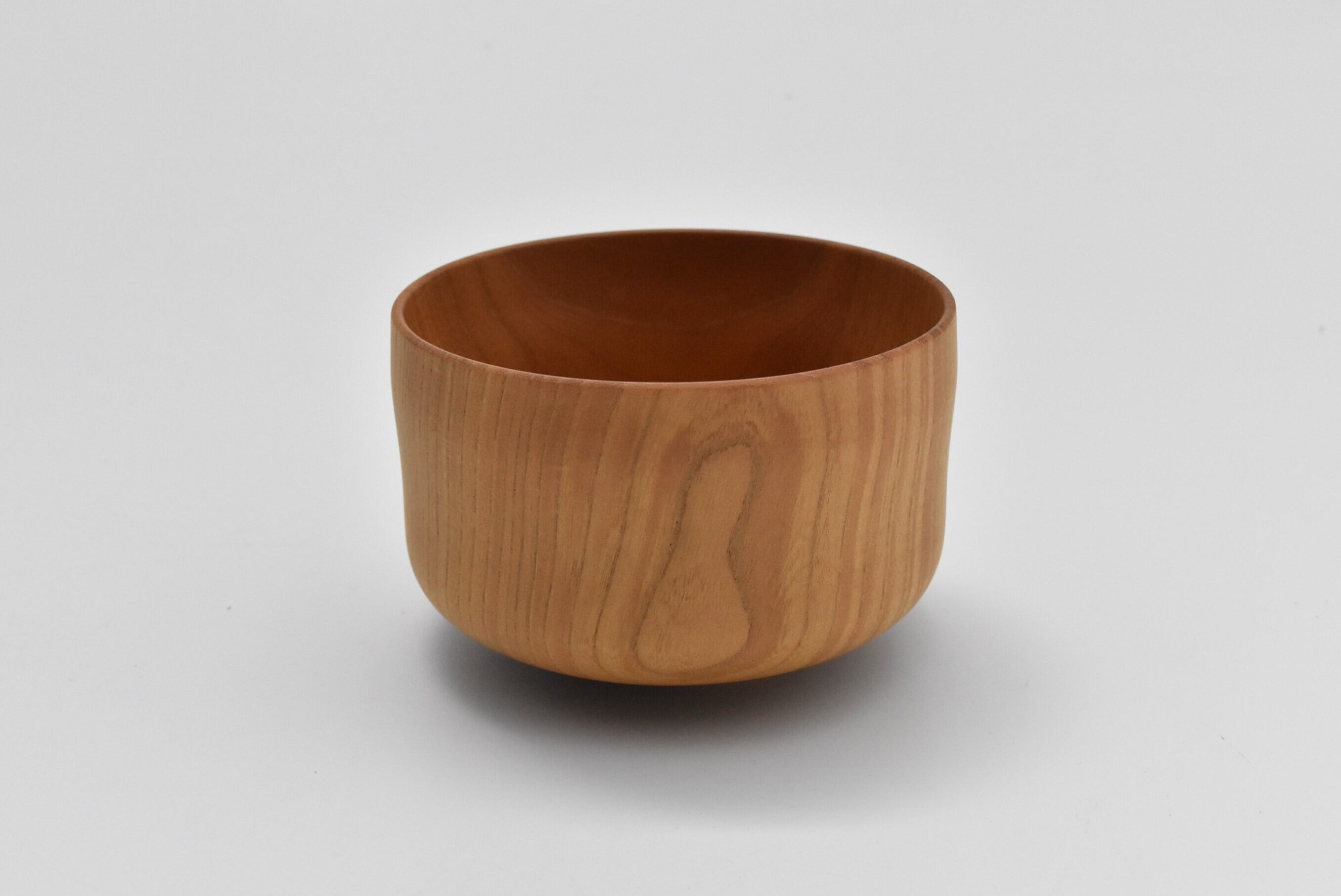 抹茶碗の代表的な形を欅(ケヤキ)でロクロ作りしました。軽く割れず熱を伝えにくい特徴があります。茶碗としても食器としてもお使いいただけます。